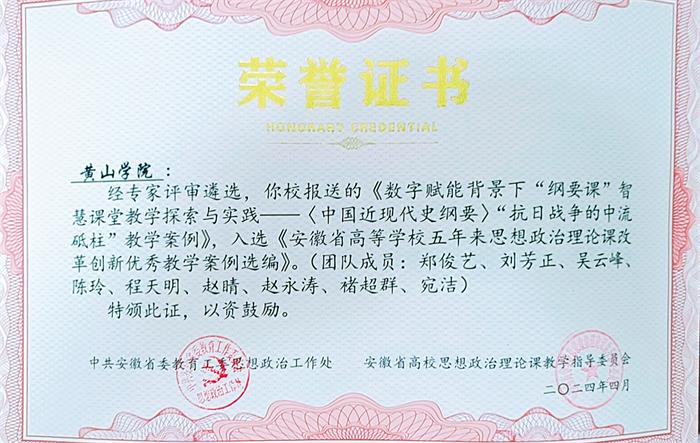 近日,威尼斯886699报送的创新教学案例《数字赋能背景下“纲要课”智慧课堂教学探索与实践——〈中国近现代史纲要〉“抗日战争的中流砥柱”教学案例》,入选《安徽省高等学校五年来思想政治理论课改革创新优秀教学案例选编》。