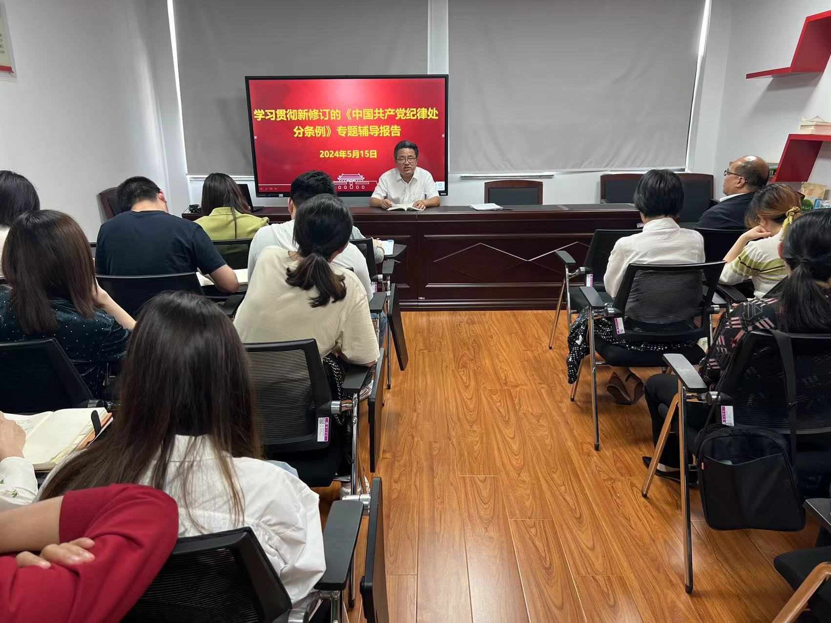 会上,刘春安围绕《条例》修订的主要内容、准确把握《条例》总则修订的重点等内容,并结合真实案例向全体参会人员作了深入浅出的解读。辅导报告重点突出、案例详实,对教育引导全体教师准确把握《条例》的丰富内涵和实践要求,扎实开展党纪学习教育具有很强的指导意义。